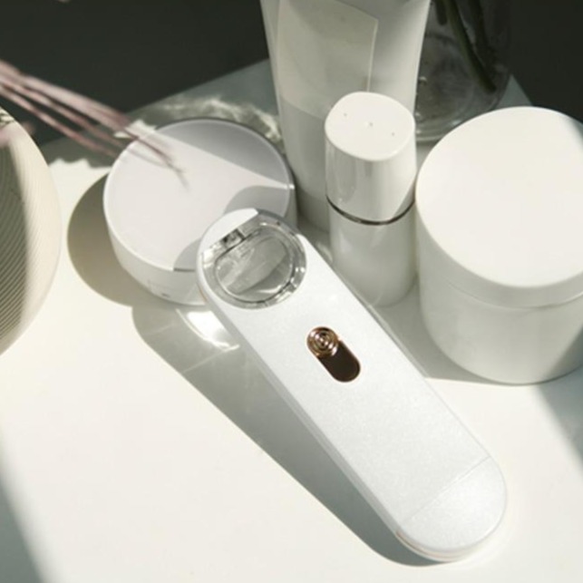 お家でも外出先でも乾燥させたくない人に。 持ち運べるナノバブルミスト。 乾燥で固くなった肌をふんわり柔らげ、 スキンケアが効きやすい状態へ。ふんわり柔らげ、 スキンケアが効きやすい状態へ。デスク横やバッグに1つ置きたくなるアイテム。ク横やバッグに1つ置きたくなるアイテム。 |